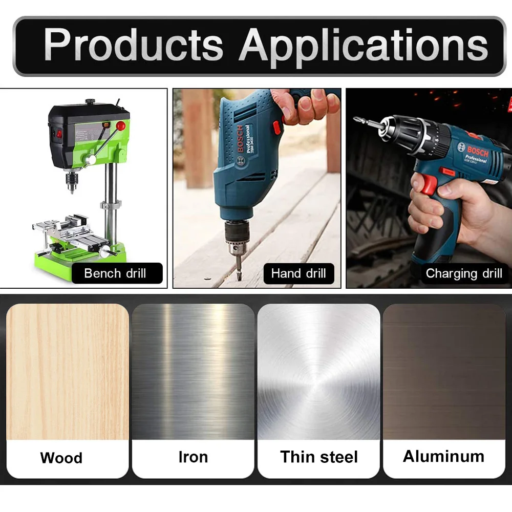 - Tratado termicamente e altamente polido.Faz furos perfeitamente redondos em aço, latão, plástico, madeira, etc.