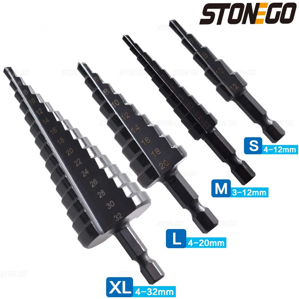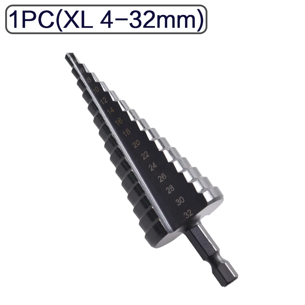 XL: 4-32 mm (4 mm, 6 mm, 8 mm, 10 mm, 12 mm, 14 mm, 16 mm, 18 mm, 20 mm, 22 mm, 24 mm, 26 mm, 28 mm, 30 mm, 32 mm) 15 etapas.